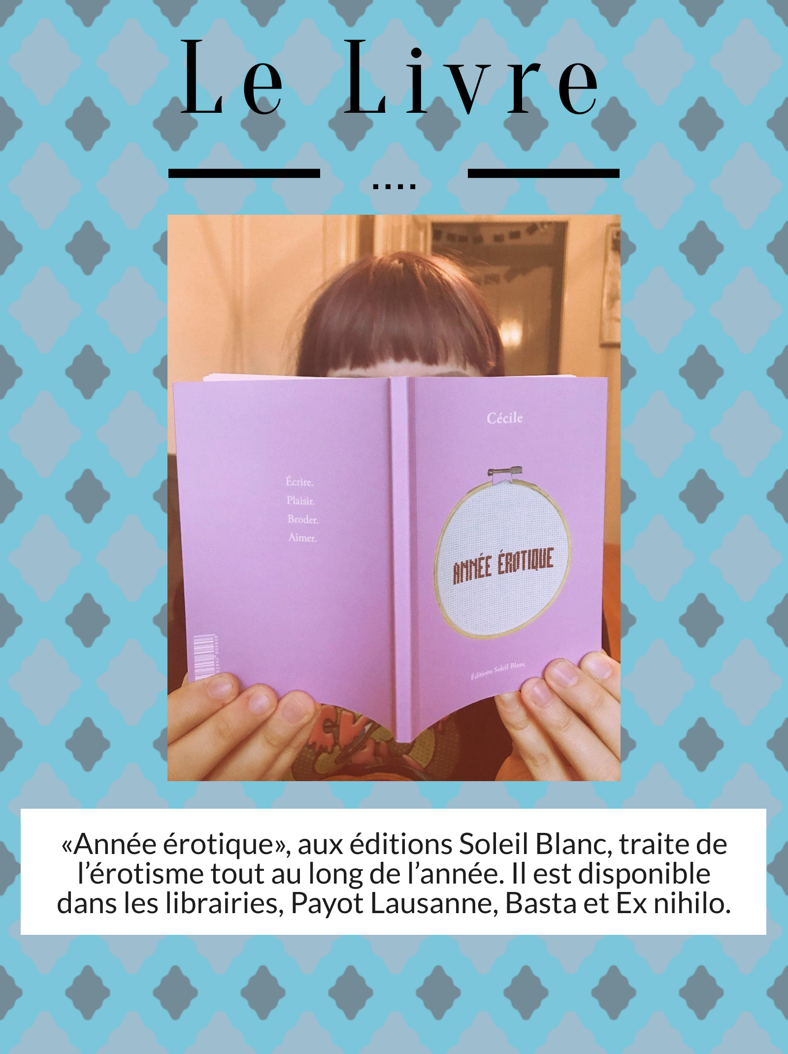 Moi (rires). En fait, j’avais envie de me faire un petit objet, avec cette histoire d’année érotique. Car l’érotisme c’est toute l’année. J’aime ce concept du calendrier, avec un poème par mois. De plus, je ne pense pas qu’il existe une saison érotique en particulier, comme on entend souvent pour l’été. Au contraire, je pense que peut-être en hiver on a froid et qu’on préfère peut-être se blottir contre quelqu’un. Et vu que mes broderies et mes poèmes sont féministes, c’est plus dans l’idée d’un empowerment tout au long de l’année.